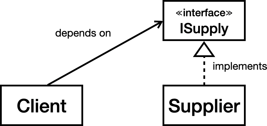 What if those methods change? Then the client changes too. What if we want to test Client using a substitute Supplier? We can’t, because Client is coupled to the real Supplier.