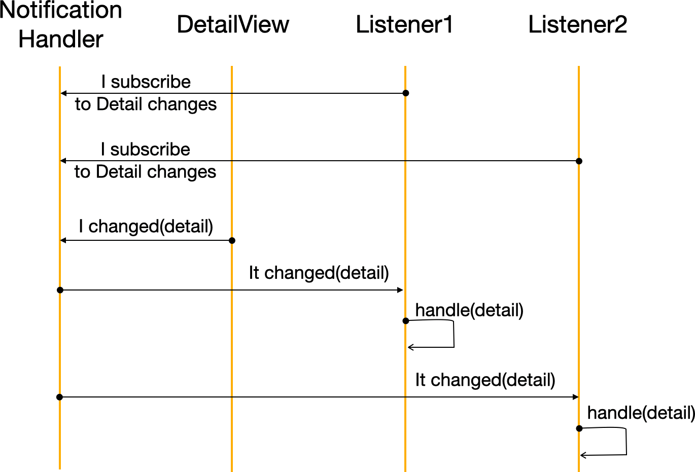 This makes DetailView more focused, it lets us put notification-handling code in one place, and it separates DetailView from its former “partners” – they know about Detail, but they don’t have to know about DetailView at all.